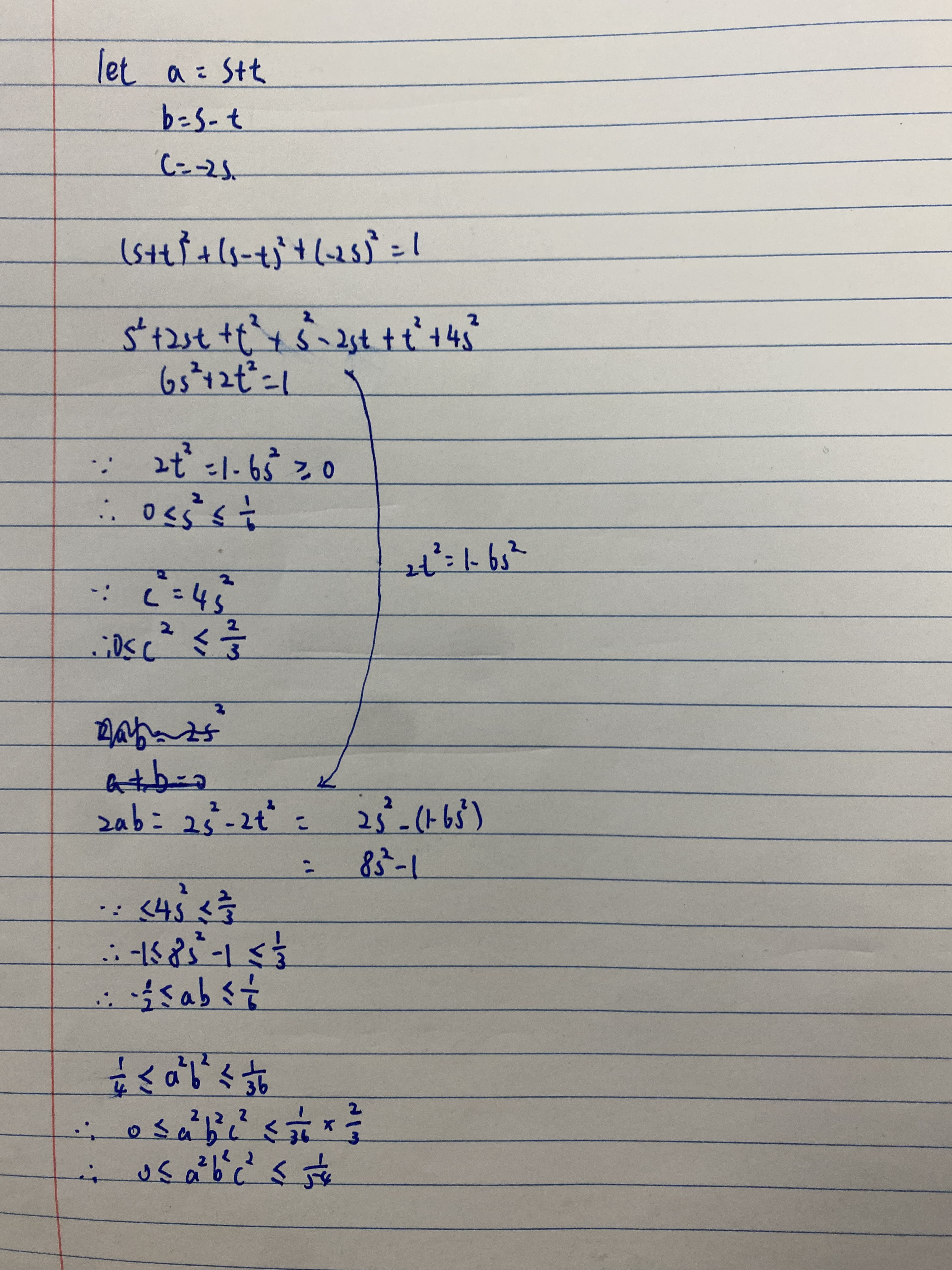 Hint: let $a=s+t, b=s-t, c=-2 s$