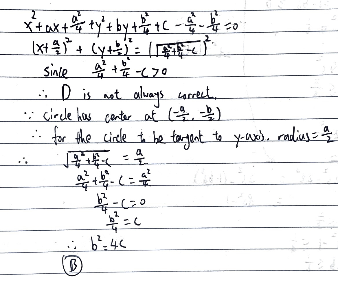 E. $-\frac{a}{2}=\sqrt{\frac{a^{2}+b^{2}}{4}-c}$